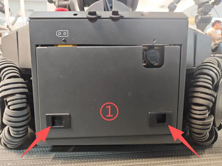Note: Before powering on, confirm that the handheld emergency stop, back emergency stop, and mobile platform emergency stop are in the non-triggered position