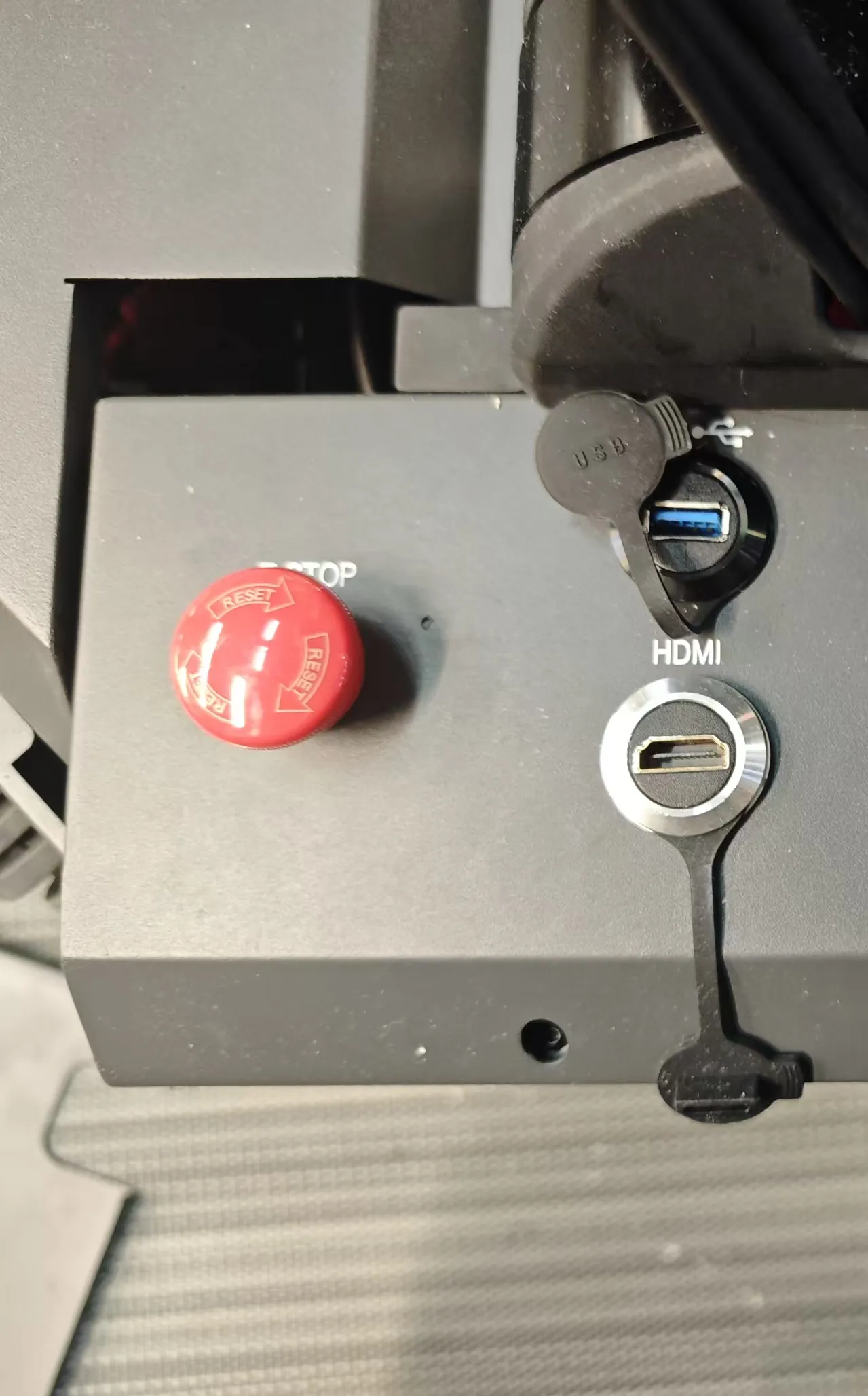 In the powered-on state, press the back emergency stop and check the feedback: