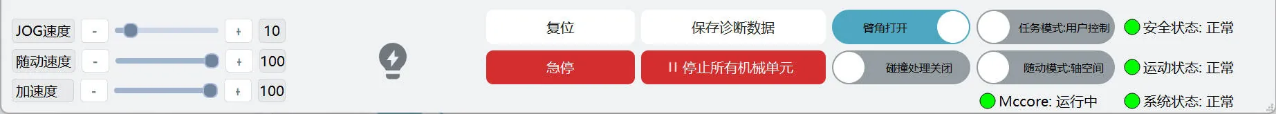 | ③ | ![]() | Servo reset button. When the robot is in emergency stop or servo error state, after eliminating the factors causing the above states, click this button to restore the robot state. |