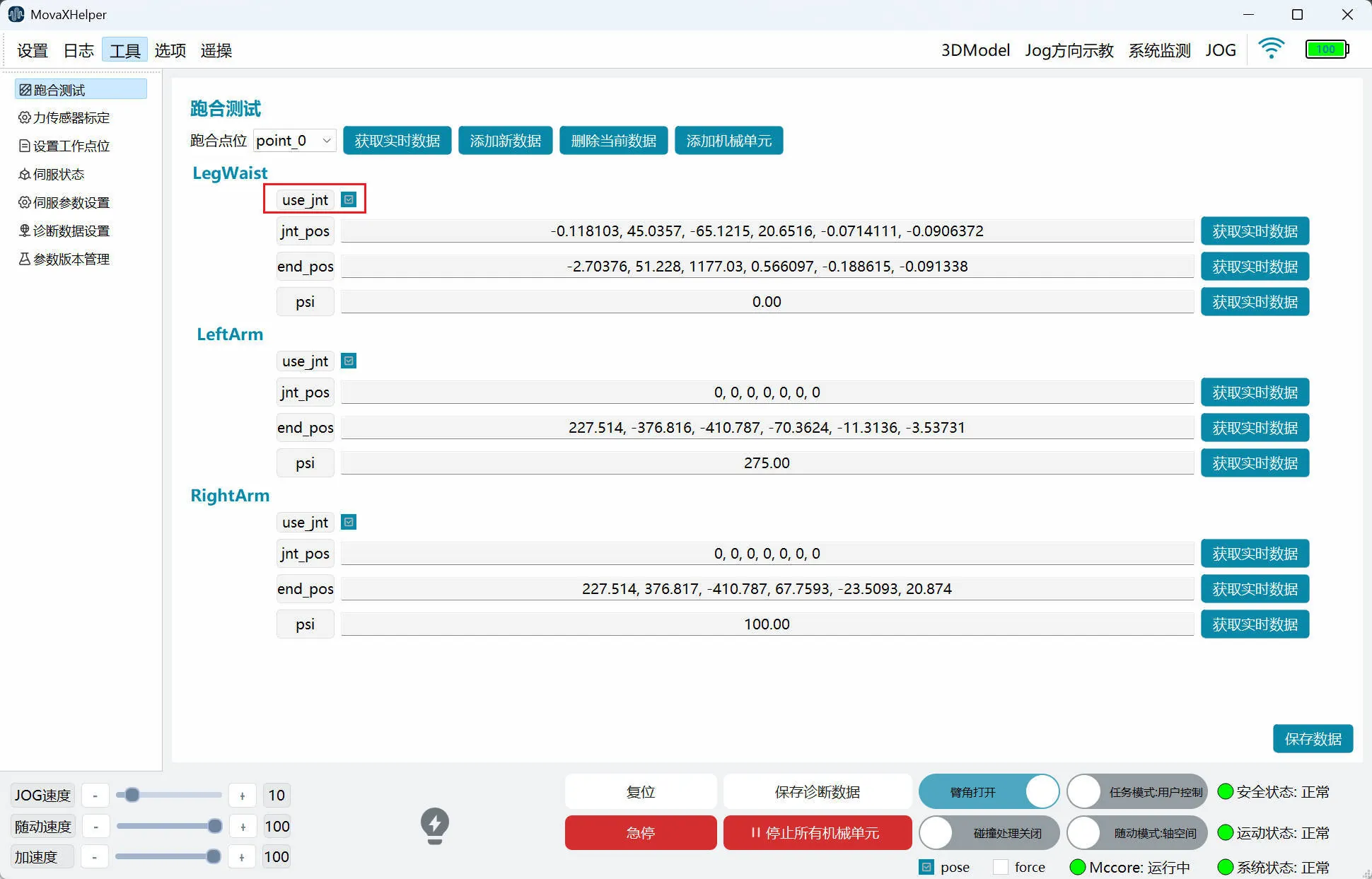 - ⑤ Get Real-time Data: Get the current angle value of a single mechanical unit and update to the mechanical unit selected for this point.