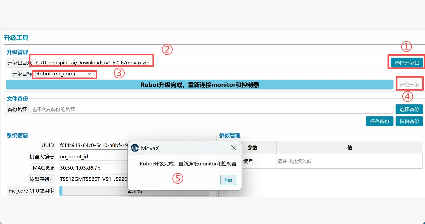 - Click Start Upgrade, wait for the upgrade to complete, click Connect Monitor and Start Controller according to the prompts;