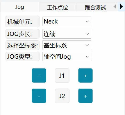 Neck joint JOG control method: J1 is left-right rotation, J2 is up-down pitch
