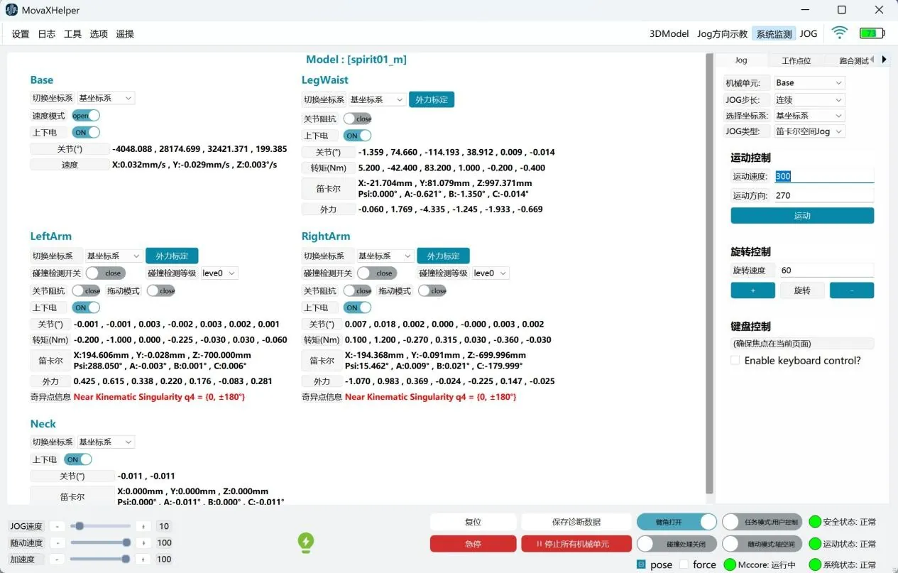 - Robot power on: Enter the [System Detection] interface, select the modules to power on, such as left arm, right arm, waist-leg.
